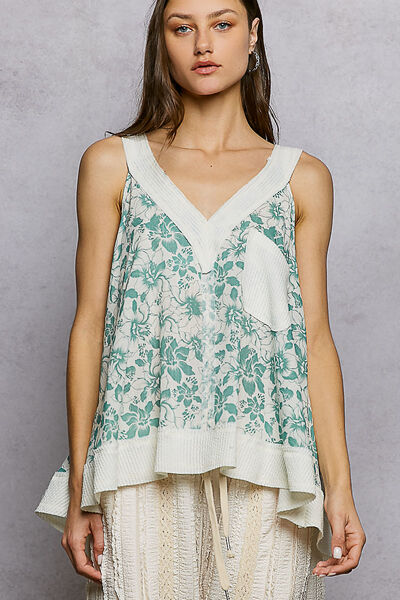 POL Floral V-Neck Tank with Front Pocket