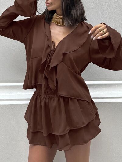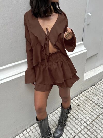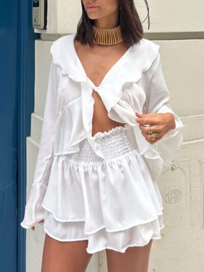 Ruffle Trim Top and Skirt Two-Piece Set