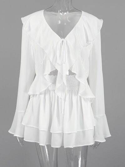 - Features:Tiered,Ruffled,Tied