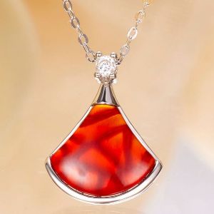 Fan-Shaped Red Agate Pendant Necklace