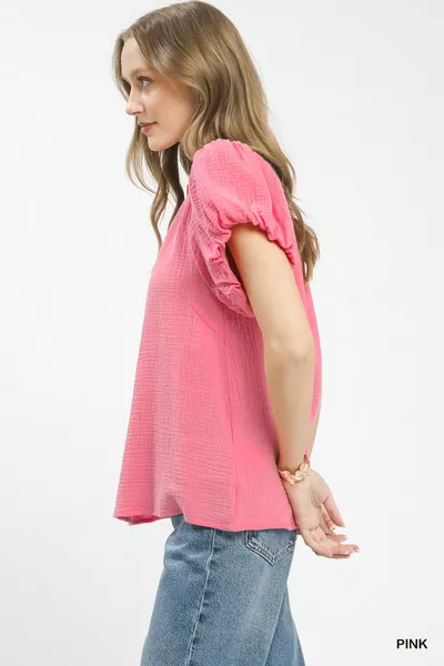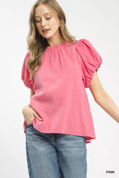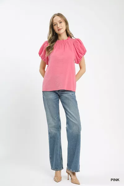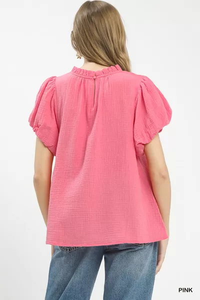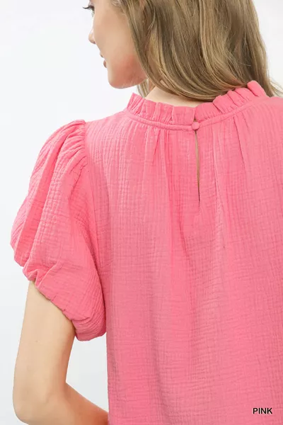 Umgee Textured Gauze Ruffle Neck Boho Top