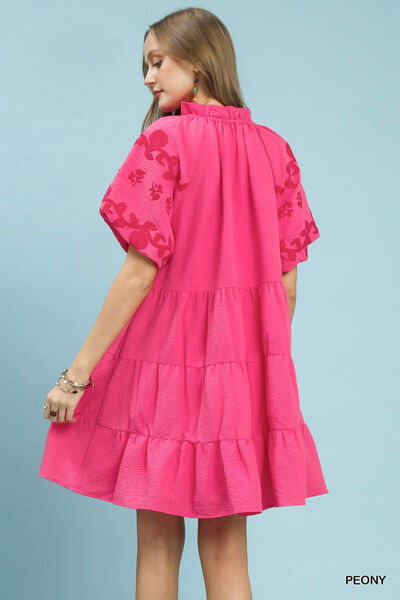 Umgee Embroidered Tiered Puff Sleeve Mini Dress