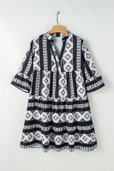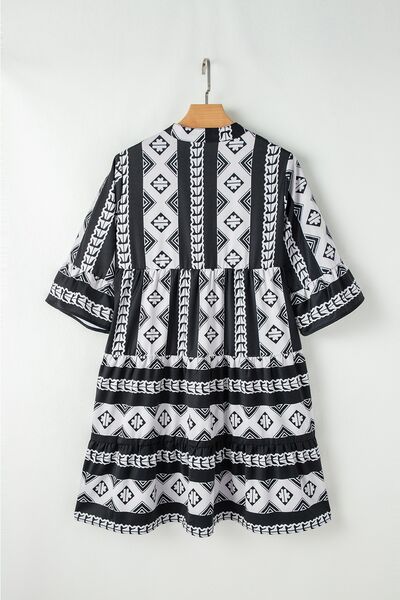 Geometric Print Ruffle Hem Mini Dress