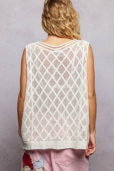 POL V-Neck Crochet Tank with Diamond Weave Knit Patterns
