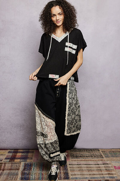 POL Short Sleeve Hooded Top with Back-Open Detail