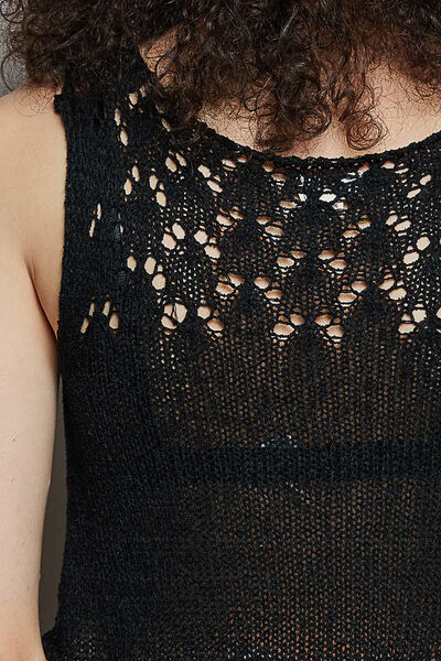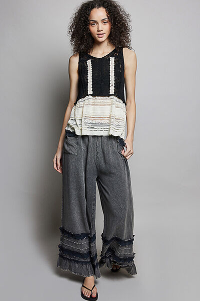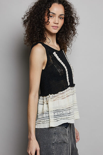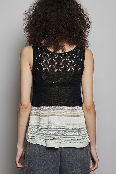 POL V-Neck Crochet Sweater Vest with Lace Trim