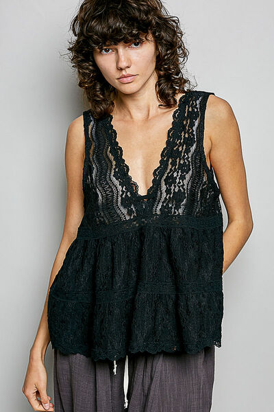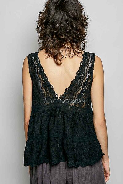 POL Deep V-Neck Scalloped Lace Sleeveless Top