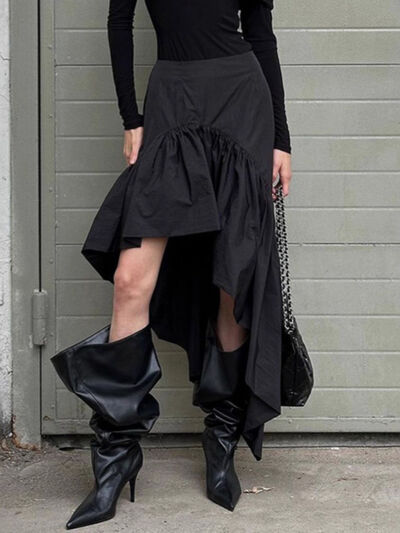 Asymmetrical Ruffle Hem Midi Skirt