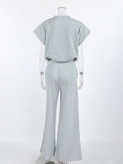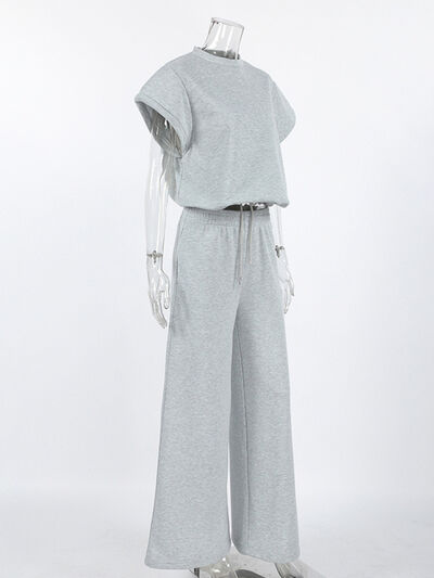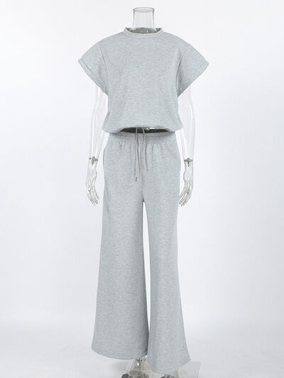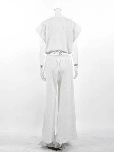 Round Neck Top and Wide Leg Pants Set
