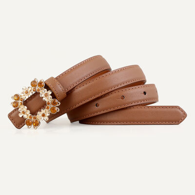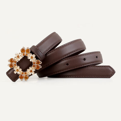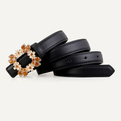 Rhinestone Buckle Leather Belt