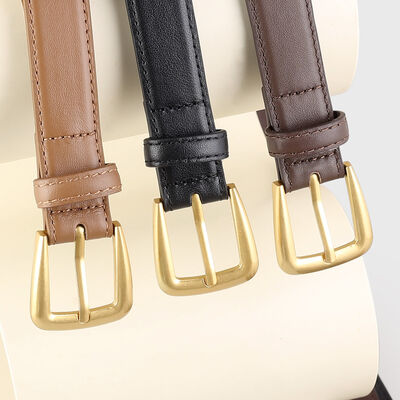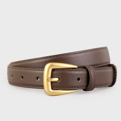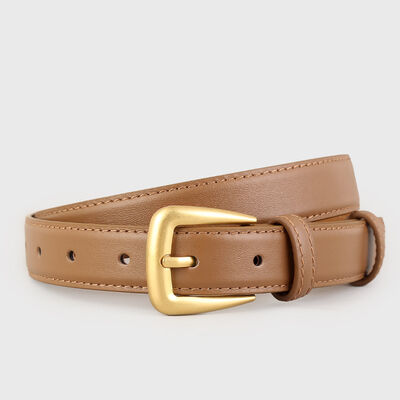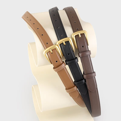 Skinny Leather Belt with Golden Buckle