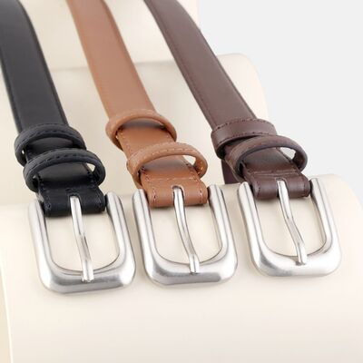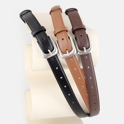 Classic Buckle Skinny Leather Belt