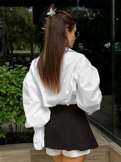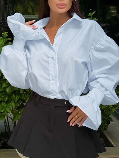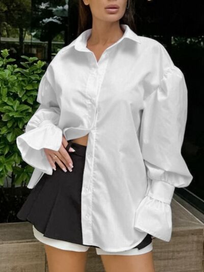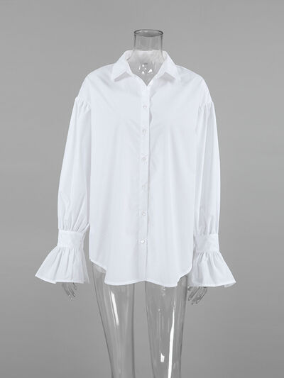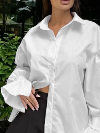 Button-Down Flounce Sleeve Shirt