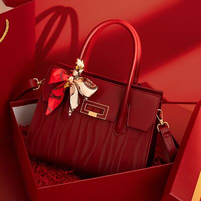 Embossed Leather Top Handle Handbag