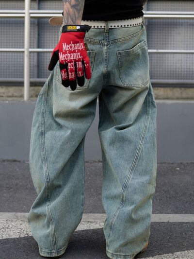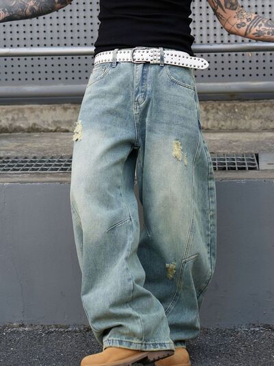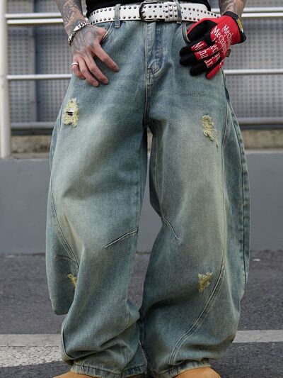 Men's Full Size Distressed Wide Leg Jeans Plus Size