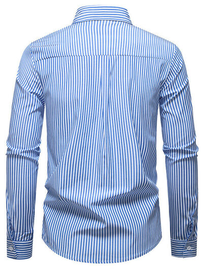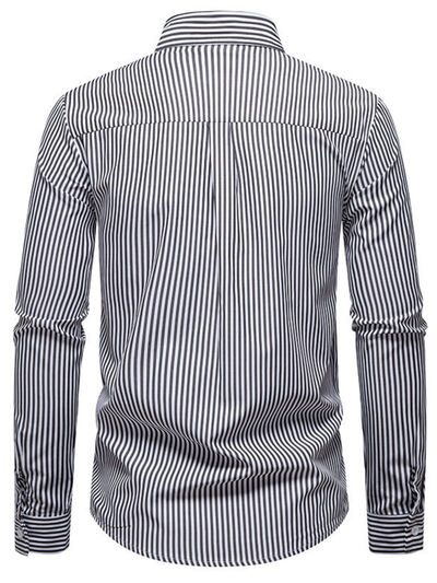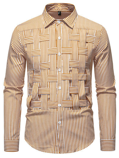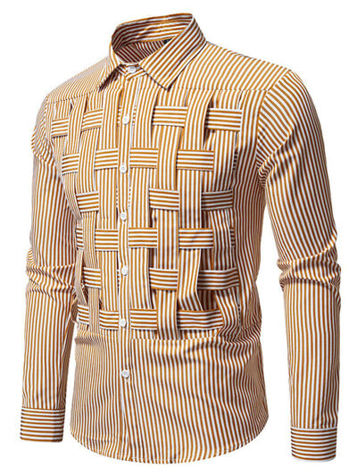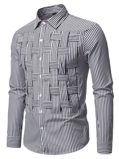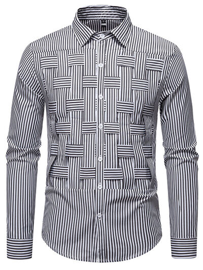 Men's Striped Woven Pattern Long Sleeve Shirt