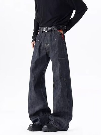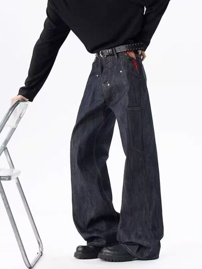 Men's Full Size Wide Leg Wash Jeans Plus Size