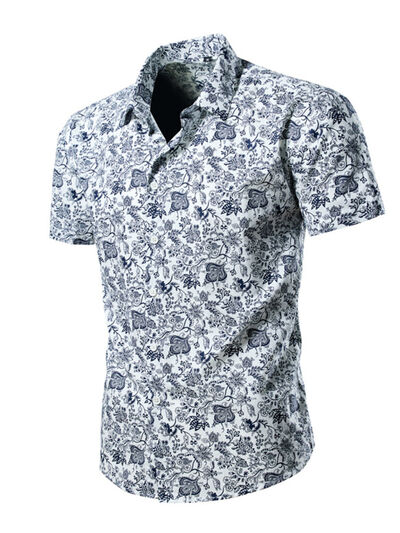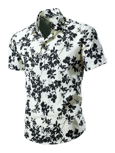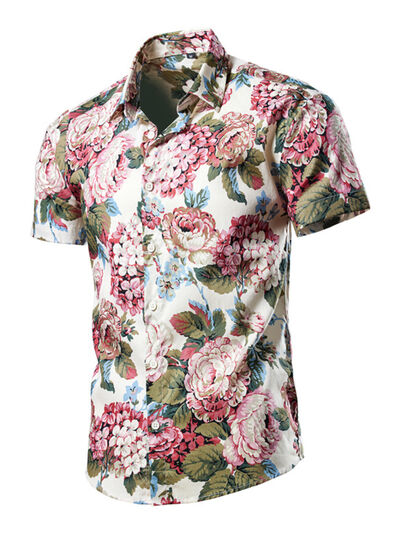 Men's Plus Size Floral Print Short Sleeve Casual Shirt