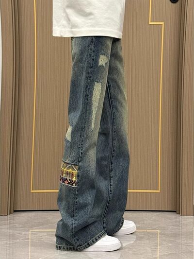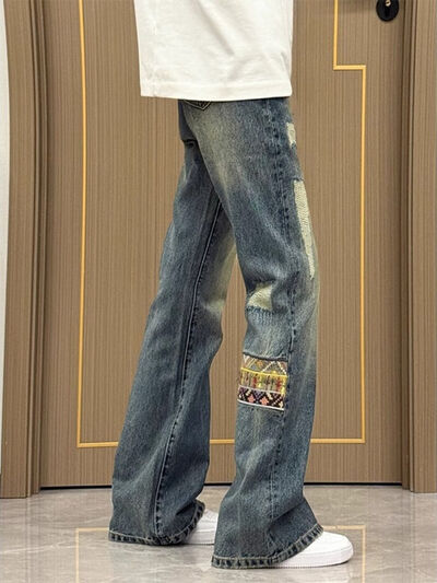 Men's Full Size Patchwork Wide Leg Jeans Plus Size