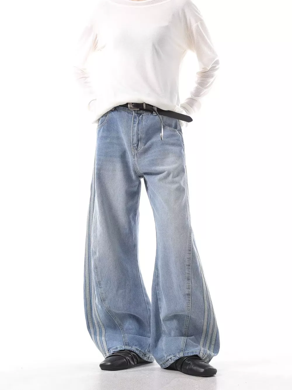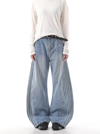 Men's Full Size Wide Leg Jeans with Side Stripes Plus Size