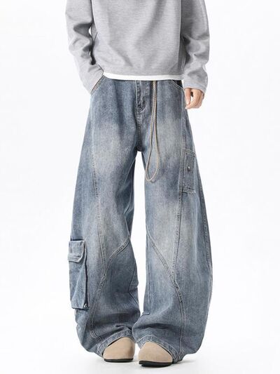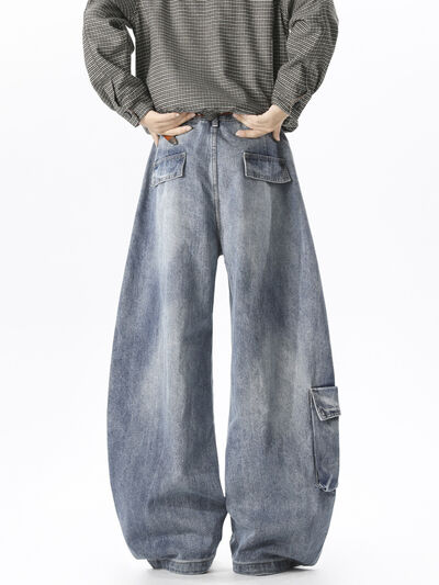 Men's Full Size Wide Leg Cargo Jeans Plus Size