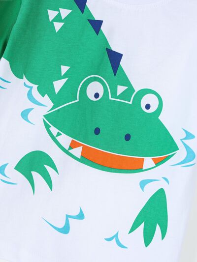 Children's Crocodile Graphic Round Neck T-Shirt