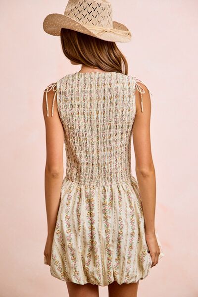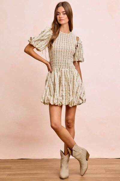 BiBi Floral Bow Tie Attachable Puff Sleeves Dress