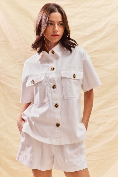 This stylish denim set features a classic button-down shirt and matching shorts, perfect for creating a chic and effortless look. Crafted from high-quality, breathable denim, this set offers both comfort and durability. The versatile design allows for easy mixing and matching with other wardrobe staples, making it a must-have for any fashion-conscious individual. Ideal for casual outings, vacations, or everyday wear, this denim set is a fashion and comfortable choice for spring and summer. - Features:Buttoned,Pocketed
