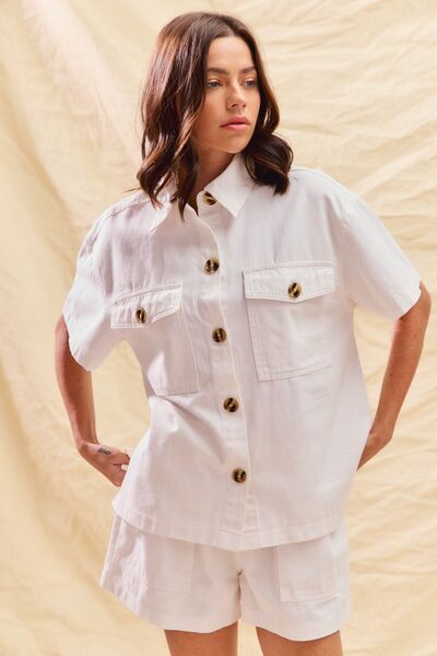 SO ME Button Down Denim Game Day Top and Shorts Set