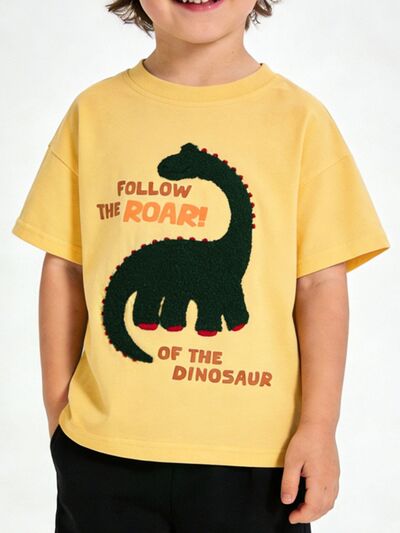 Children's Dinosaur Graphic Round Neck T-Shirt