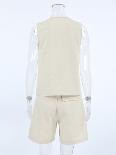 Button Up Vest and Shorts Set