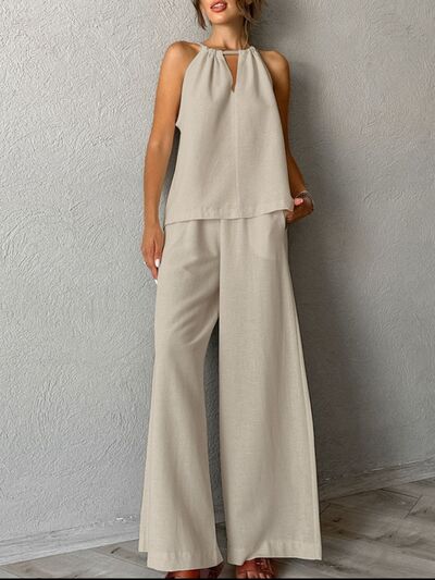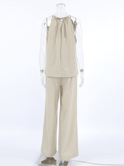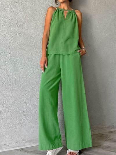 Cutout Tank and Wide Leg Pants Set