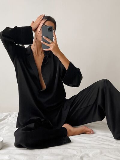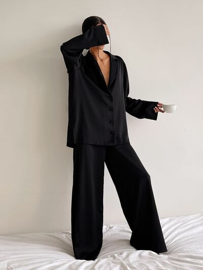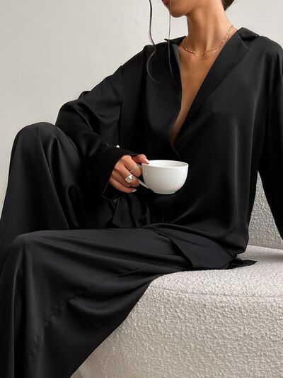 Long Sleeve Top and Wide Leg Pants Lounge Set