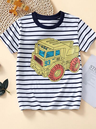Children's Striped Truck Graphic Crew Neck T-Shirt