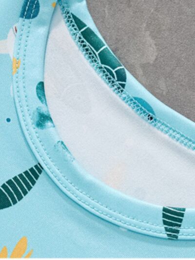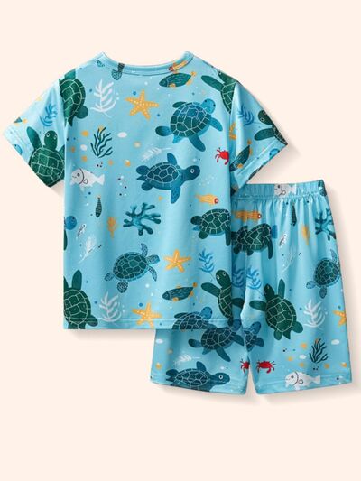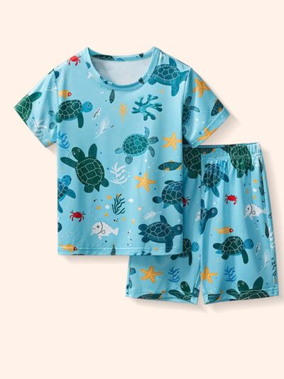 Children's Turtle Print Round Neck Tee and Shorts Set