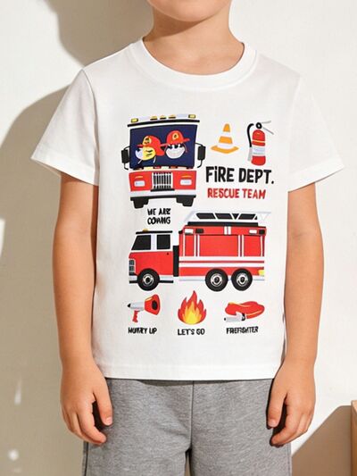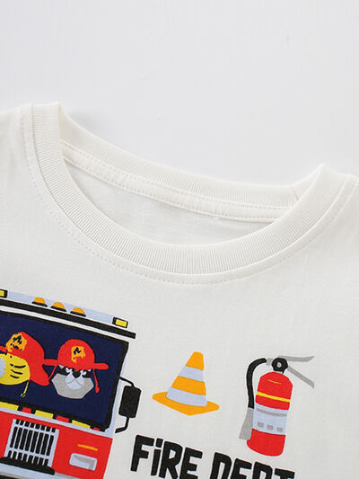 Children's Fire Truck Graphic Crew Neck T-Shirt