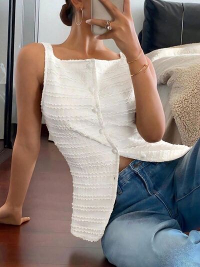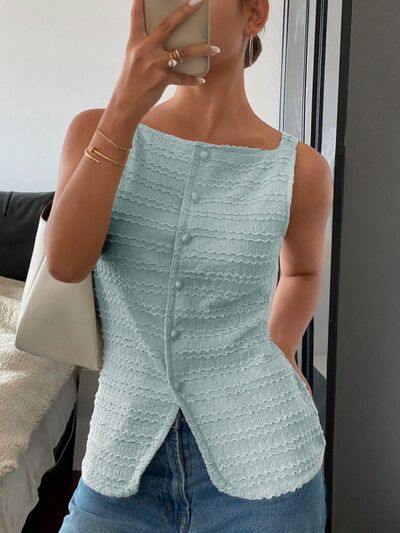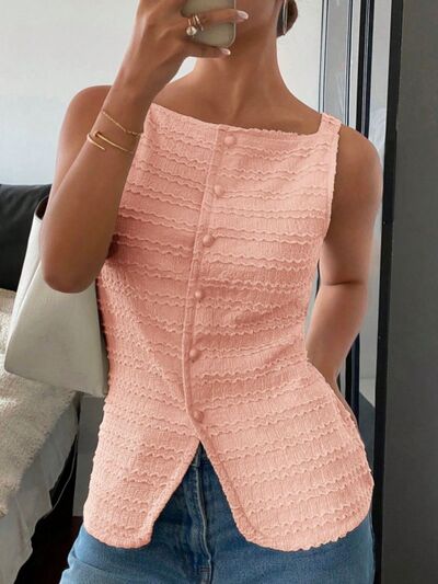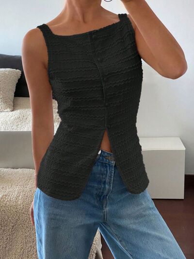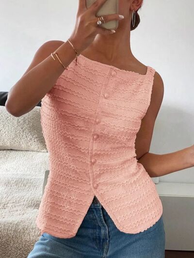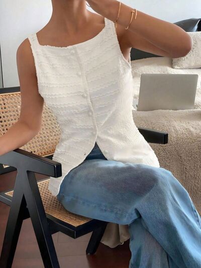 Textured Button-Front Tank
