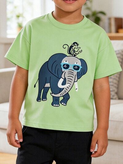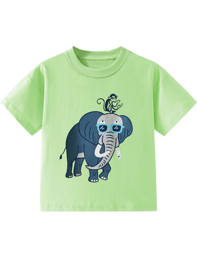 Children's Elephant Graphic Round Neck T-Shirt