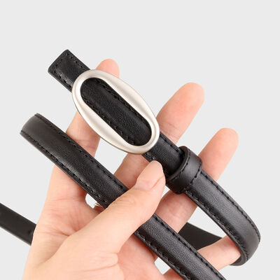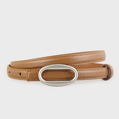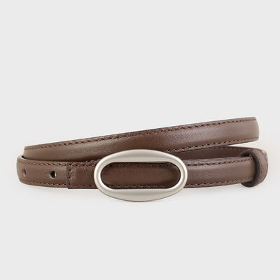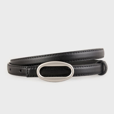 Oval Buckle Skinny Leather Belt