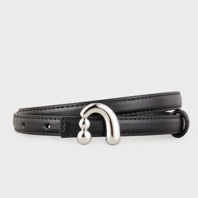 Silver Buckle Skinny Leather Belt