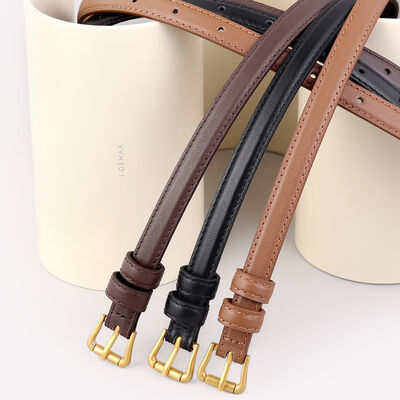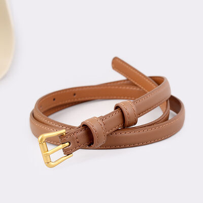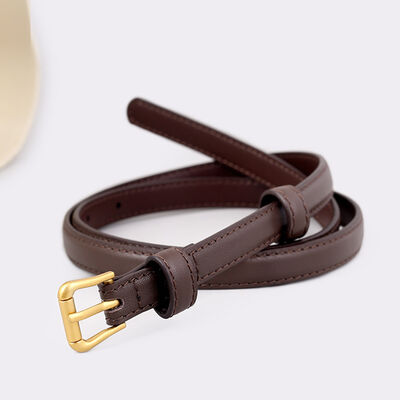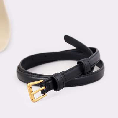 Skinny Leather Belt with Golden Buckle