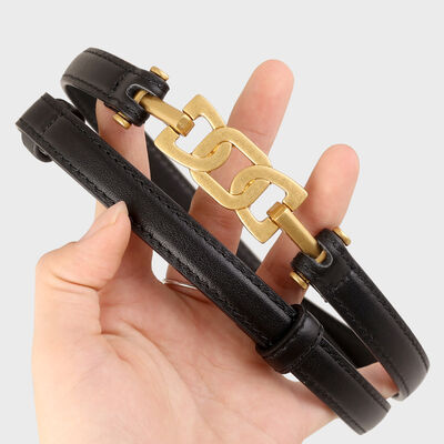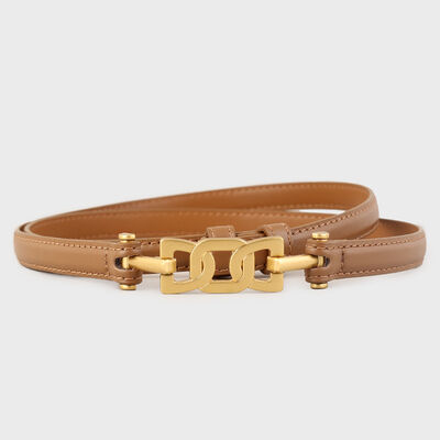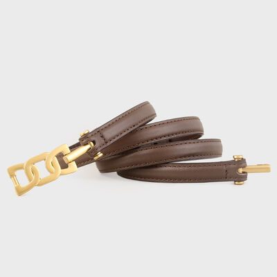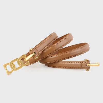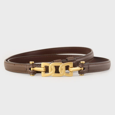Gold Buckle Skinny Leather Belt