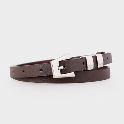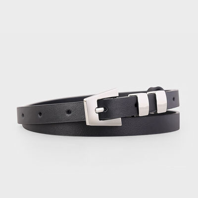 Skinny Leather Belt with Silver Buckle