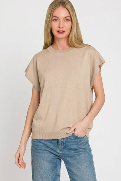 Zenana Viscose Round-neck Short Sleeve Sweater