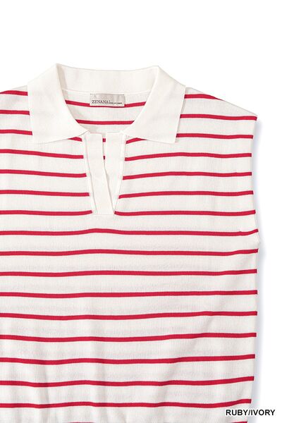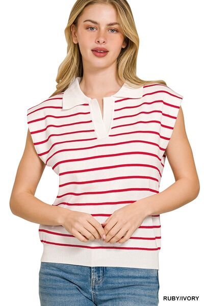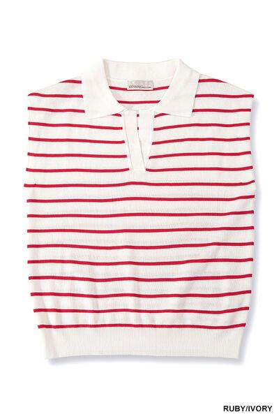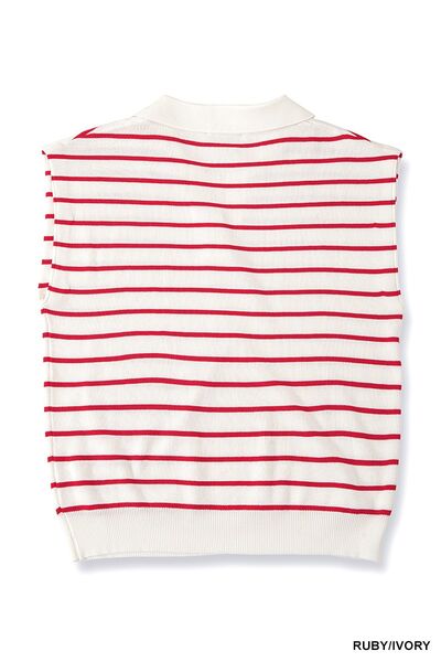 Zenana Viscose Striped Collared Sweater Vest