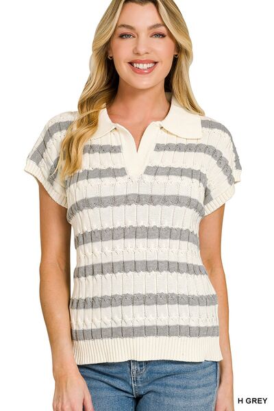 Zenana Textured Stripe Collared Sweater Vest