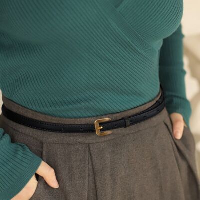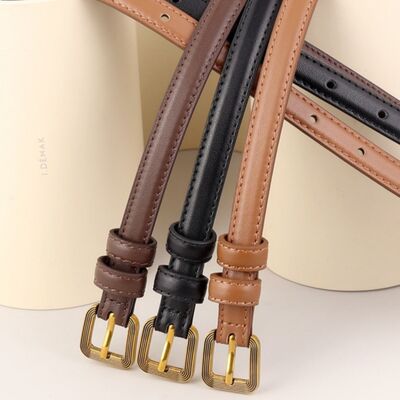 Leather Skinny Belt with Buckle