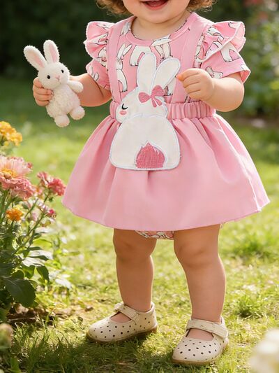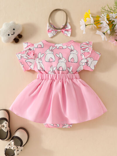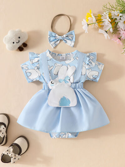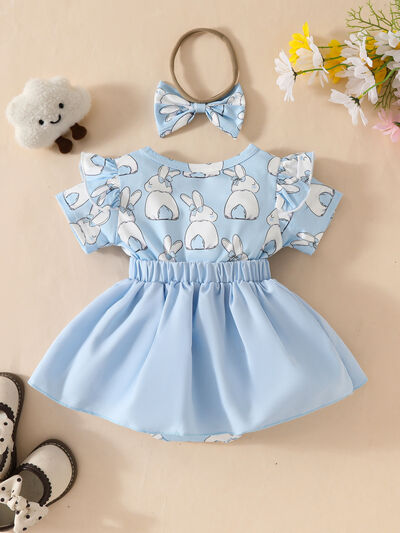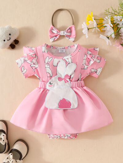 Children's Bunny Applique Bodysuit Dress & Headband Set