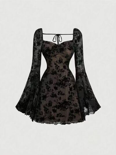 Full Size Sweetheart Neck Flared Sleeve Mini Dress Plus Size