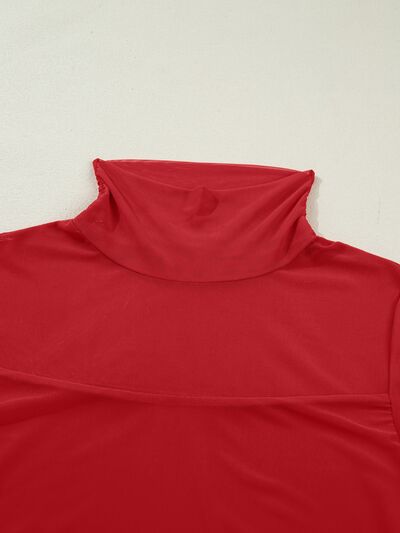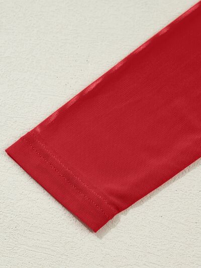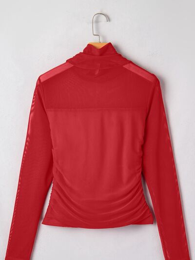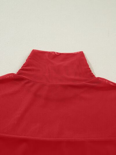 Sheer Mesh Patchwork High Neck Long Sleeve Top